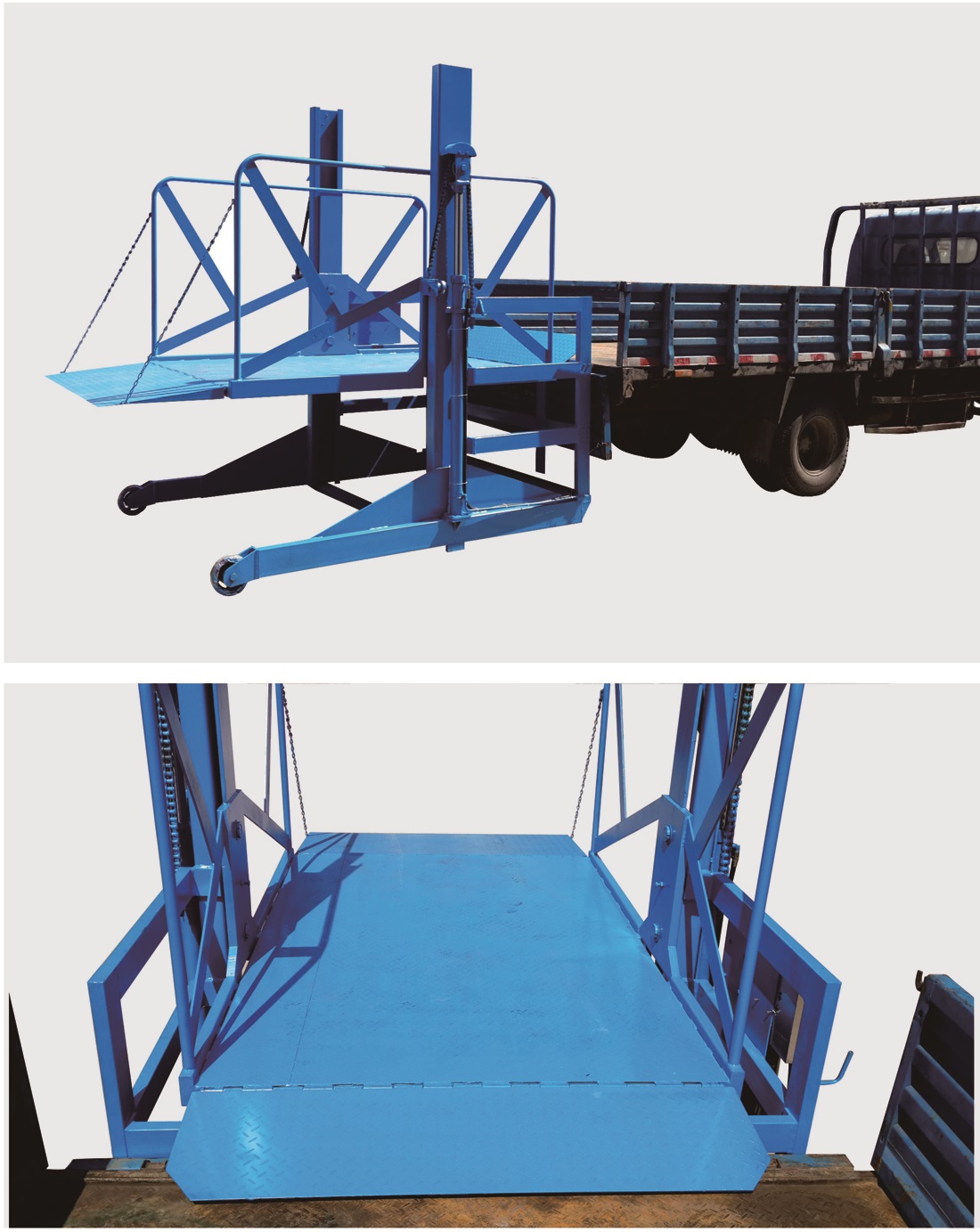 主要用于倉庫、車庫、工作車間等與貨車尾部有高度差之間貨物運送;物料上線、下線;工件裝配時調節工件高度;高處給料機送料、上料、下料舉升設備;